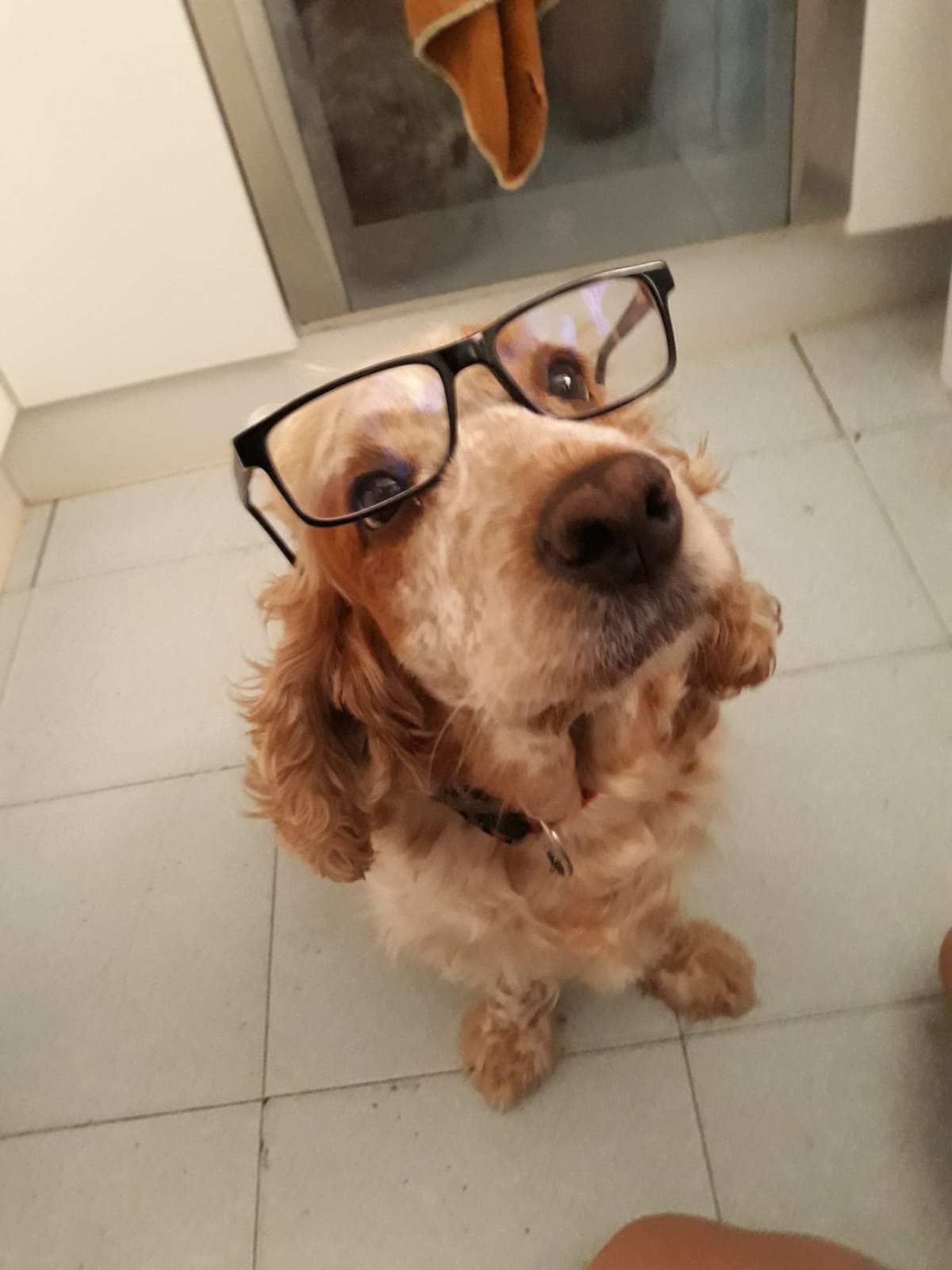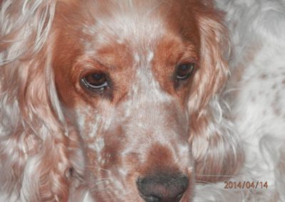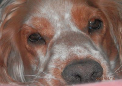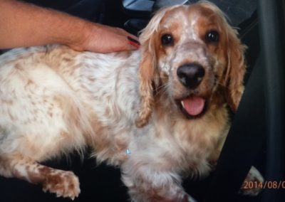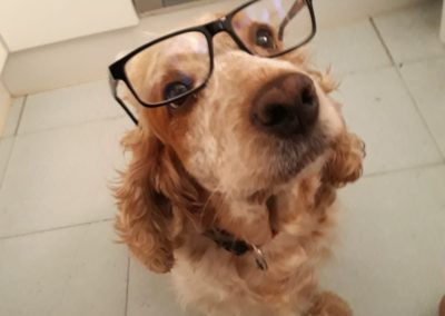 De pronto entró una señora a la clínica y se acercó a Estrella. A penas la miró, sin embargo, comentó a quien la peinaba, que le entregaría las fotos por email para su adopción. Yo ya no oí más. Adopción, era una señal. Se lo comenté a nuestra veterinaria, y en cuestión de dos horas nos vimos en las manos una correa con purpurina plateada acabada en Estrella, una cocker, recién lavada, con cara de necesitar mimos.